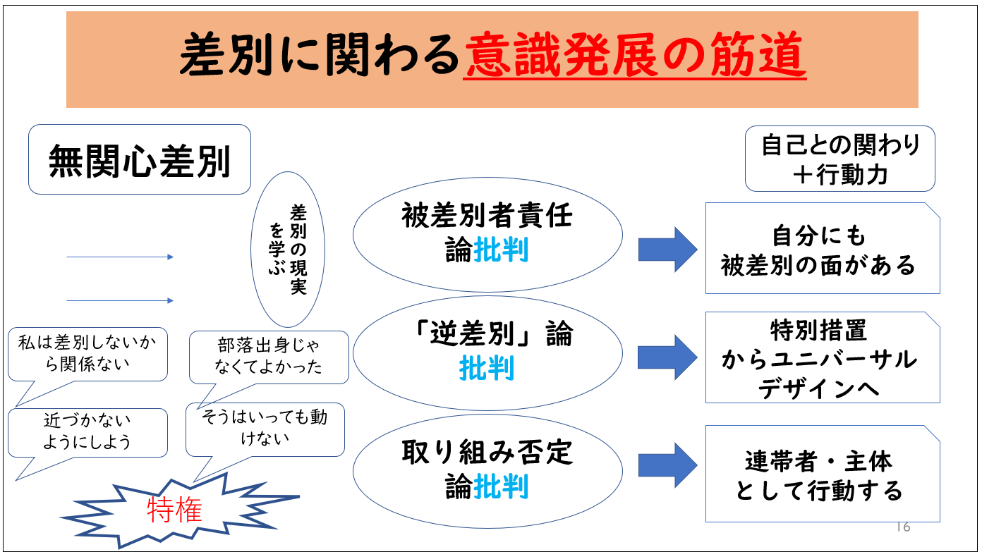 このようなことから、「差別してはいけない」ということは前提として大事ですが、そこで止まってはいけない。「そこから先にどうするか」ということが今の課題になっています。