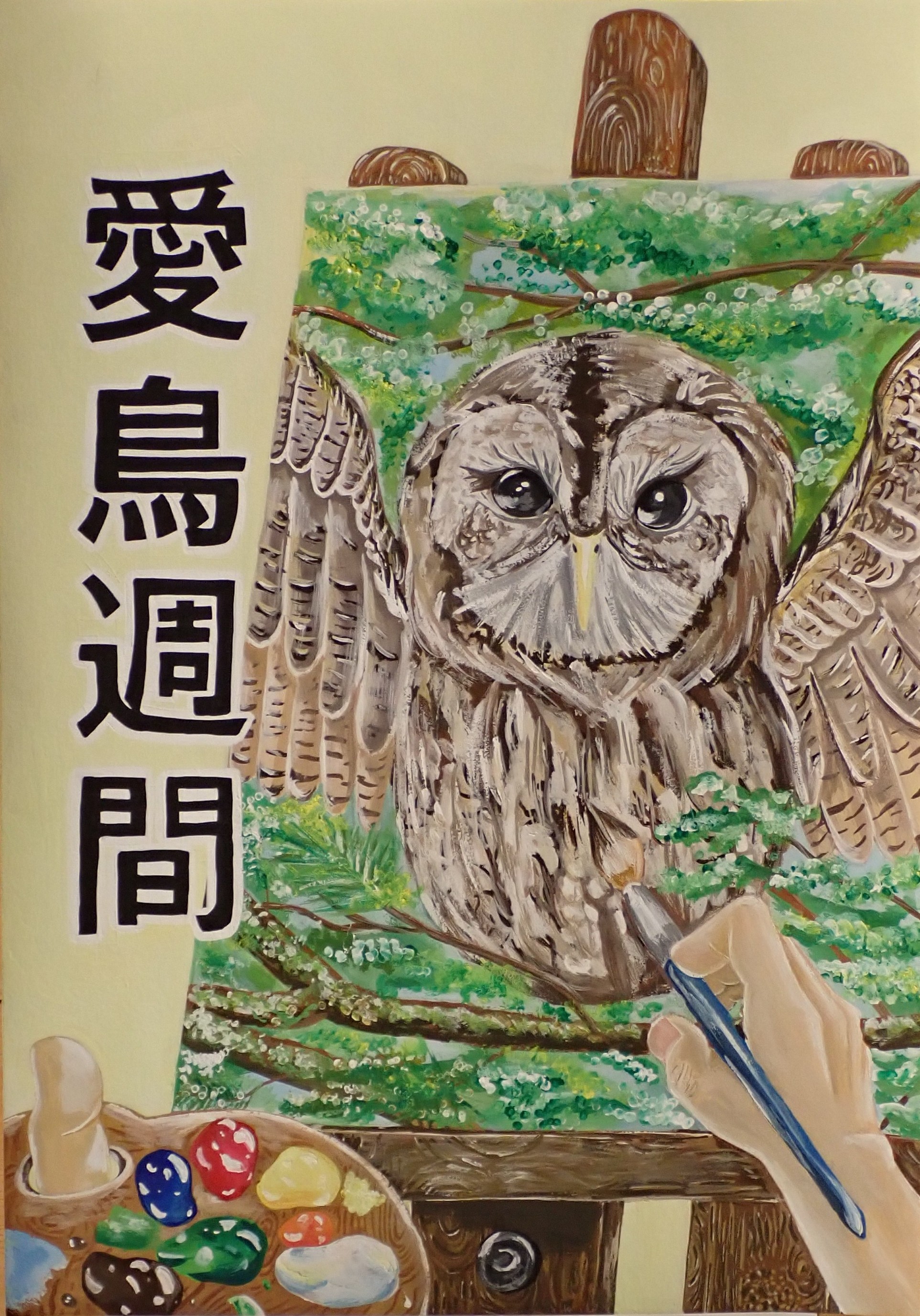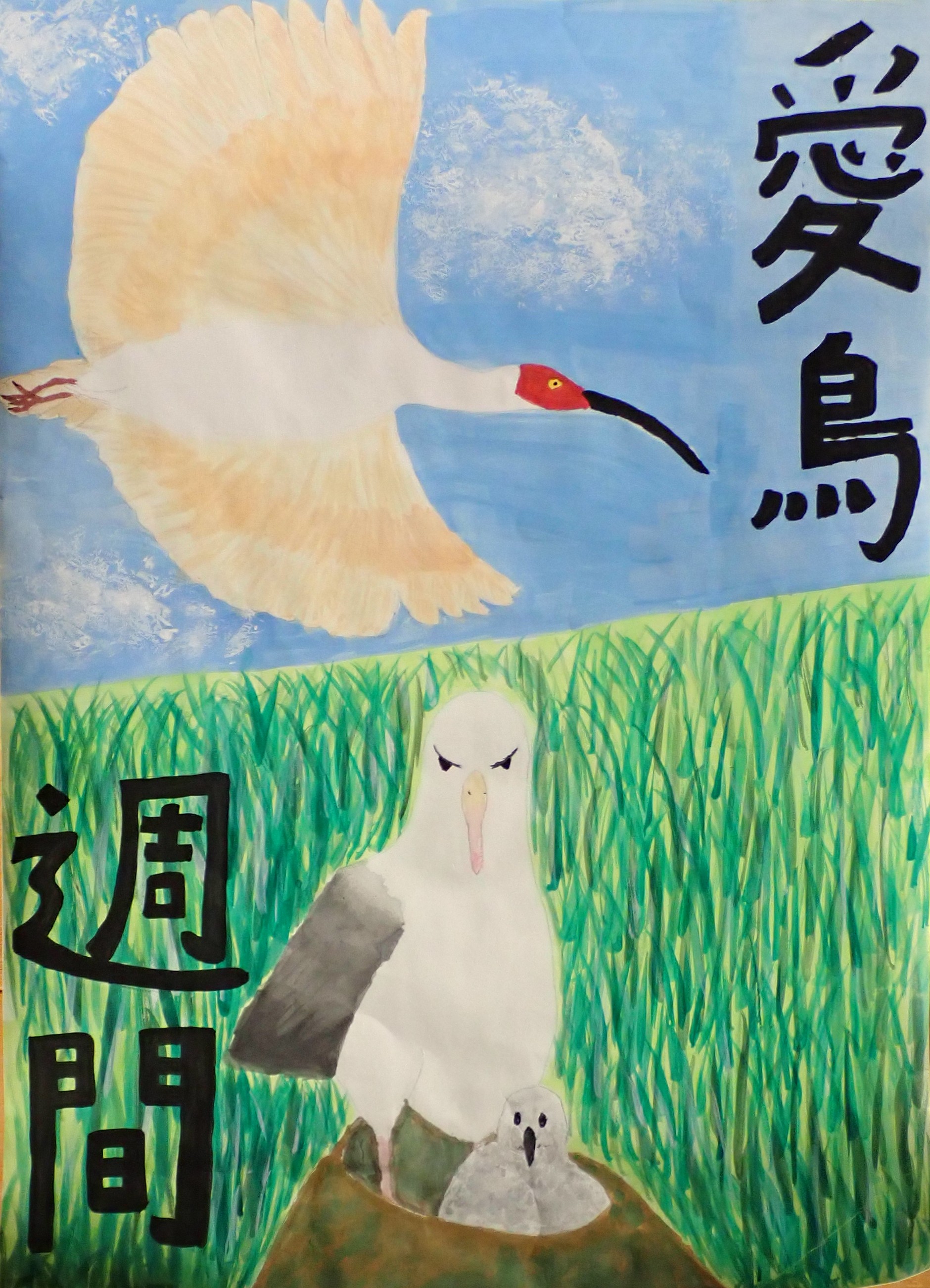 また、愛鳥週間をテーマとした作品のうち、小学生3名、中学生3名、高等学校生3名の計9名の作品について、公益財団法人日本鳥類保護連盟主催の令和8年度愛鳥週間用ポスター原画コンクールに応募しました。