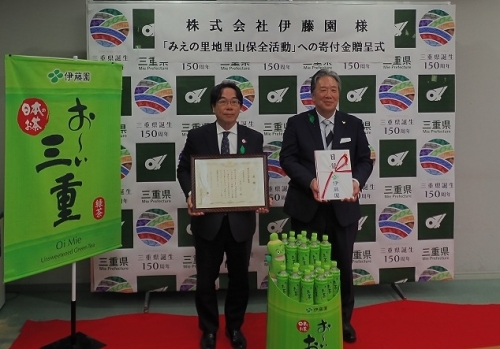 ついて、三重県が取り組んでいる「みえの里地里山保全活動」に対してご寄付いただきました。