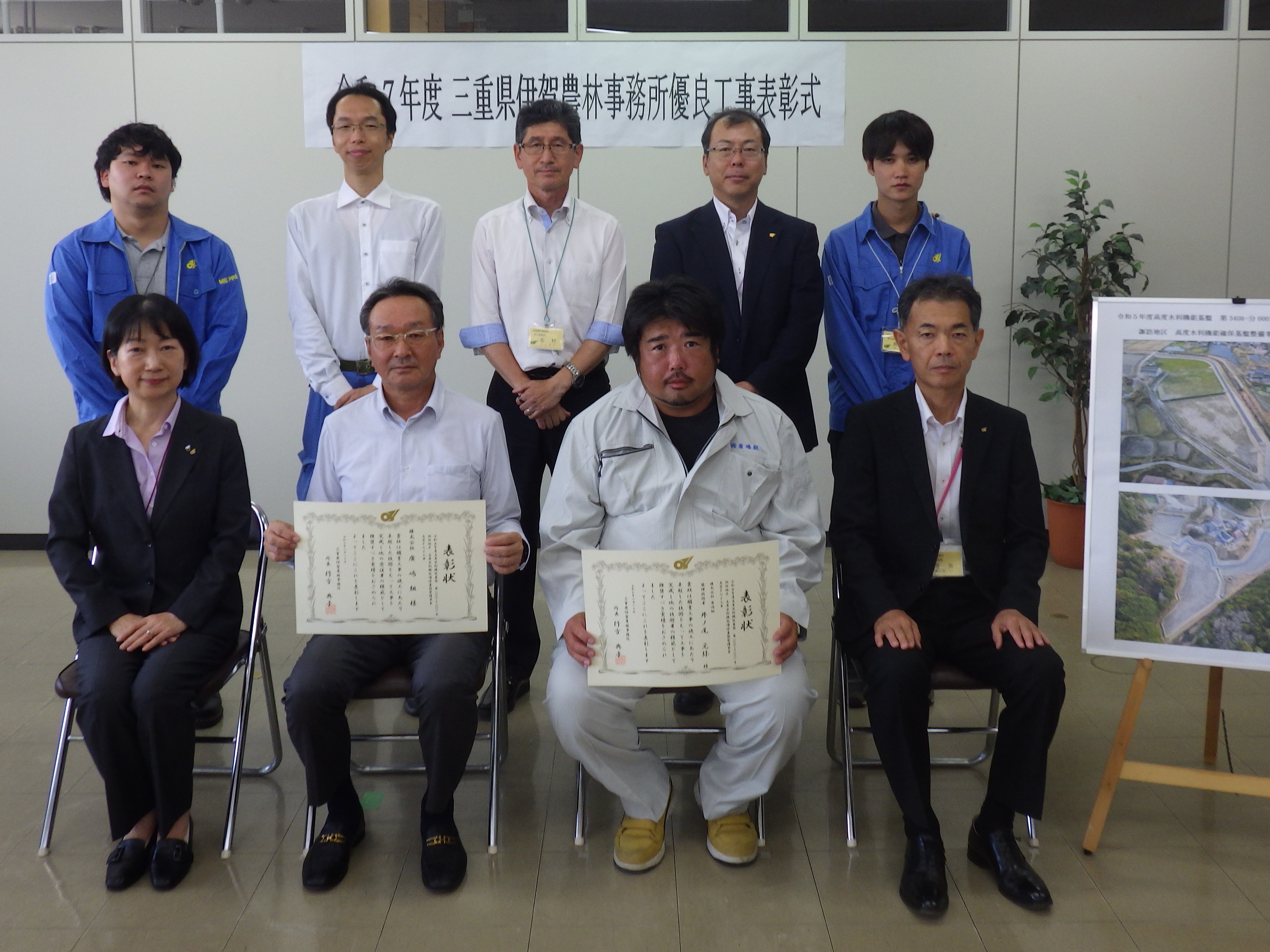 この表彰は、令和6年度に完成した伊賀農林事務所発注の建設工事において、優良と認められる工事の受注者及び技術者を表彰するものです。