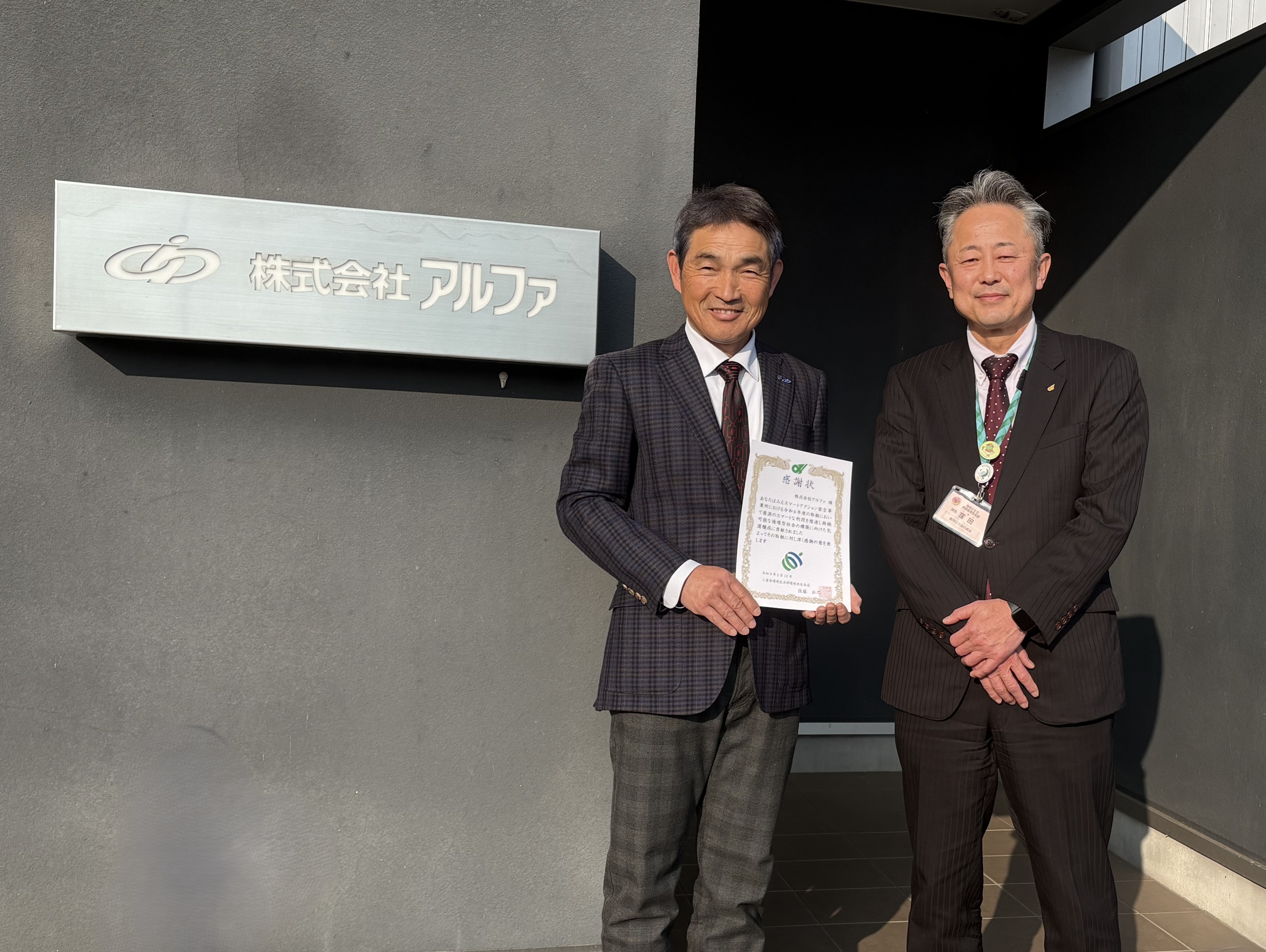 みえスマートアクション宣言事業所における優良な取組に選定した事業者に感謝の意を示すため、令和8年2月に感謝状を贈呈しました。