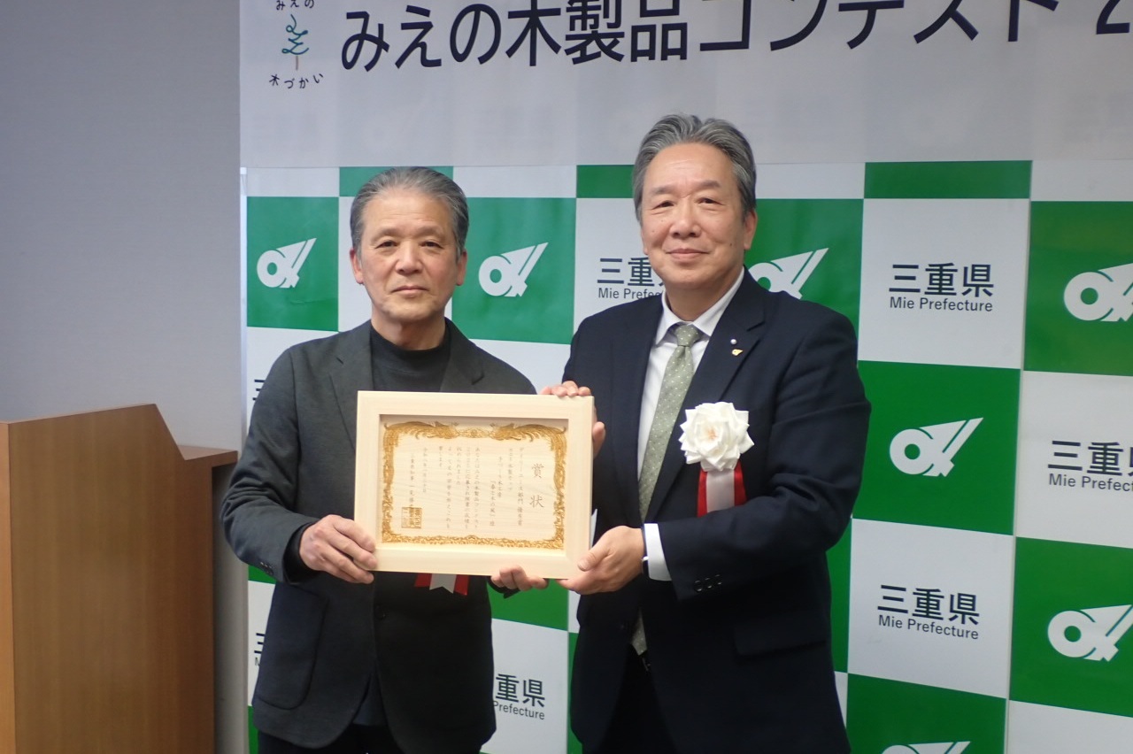 受賞者へは三重県産ヒノキを使用した木製賞状が野呂副知事より授与されました。