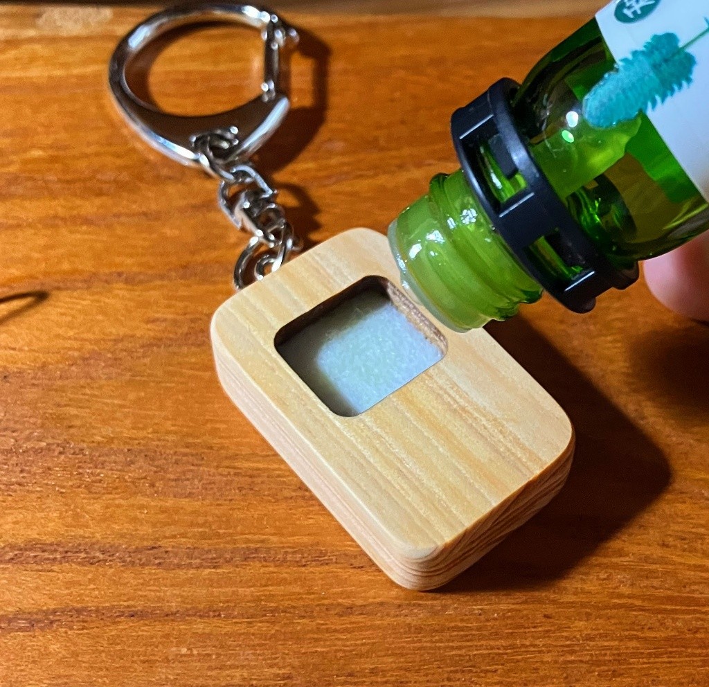 尾鷲ヒノキの精油と、同材を用いたアロマディフューザーのセットです。内蔵のコットンに精油を垂らすことで、車用ディフューザーはエアコンの風に香りをのせ、アロマキーホルダーは持ち歩きながら香りを楽しめます。伝統的な文様である七宝文様をレーザー彫刻することで和の雰囲気に仕上げています。評価のポイント