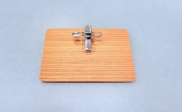 尾鷲ヒノキを使用した名札です。レーザー加工により社名、ロゴ、氏名などのご要望に対応可能です。