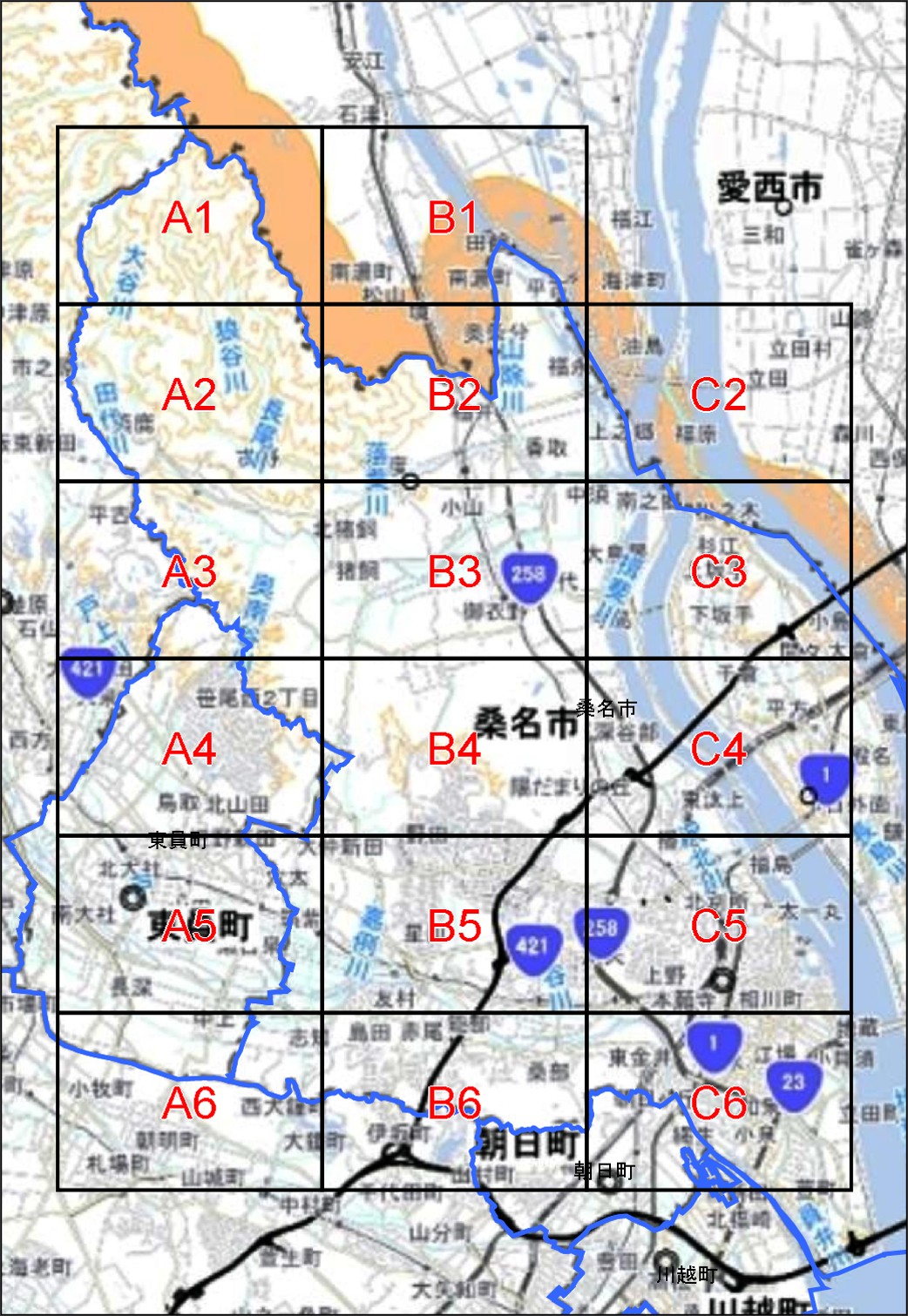 地図の下にある図面番号(「A1」や「H9」など)をクリックすると、PDFファイルがダウンロードされます。
