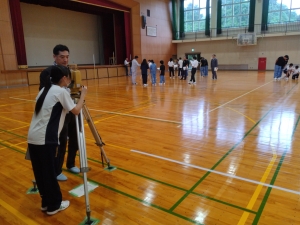 建設業の役割や公共事業について学ぶとともに、建設現場で行われている測量やドローン操作を体験