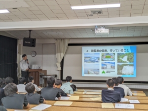 業の一環として、建設業(まちづくり)に関する授業を連携し行っています。
