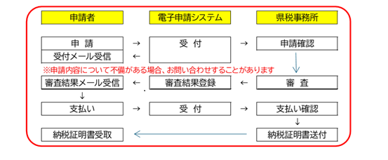 お急ぎの場合は、領収証書(原本)を持参の上、最寄りの県税事務所窓口で申請してください。