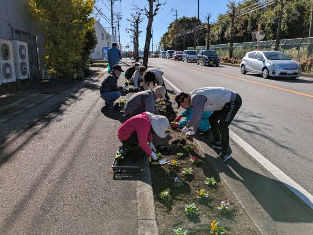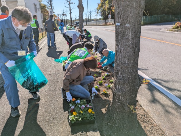 令和7年11月15日(土)、鈴鹿市住吉町地内の県道三行庄野線沿い(延長約820m)において、環境美化活動を実施しました。この活動は、本年7月に開園したミジュマル公園周辺の環境美化を目的とした花植え活動です。