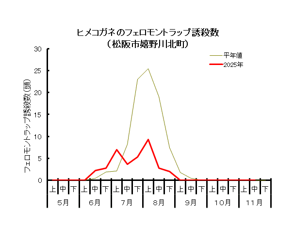 ヒメコガネ成虫の発生消長 (調査対象期間:5月1日~11月30日)