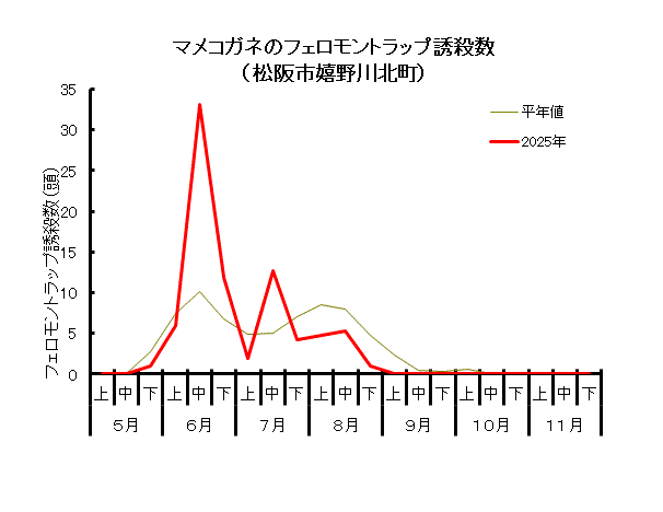 マメコガネ成虫の発生消長 (調査対象期間:5月1日~11月30日)