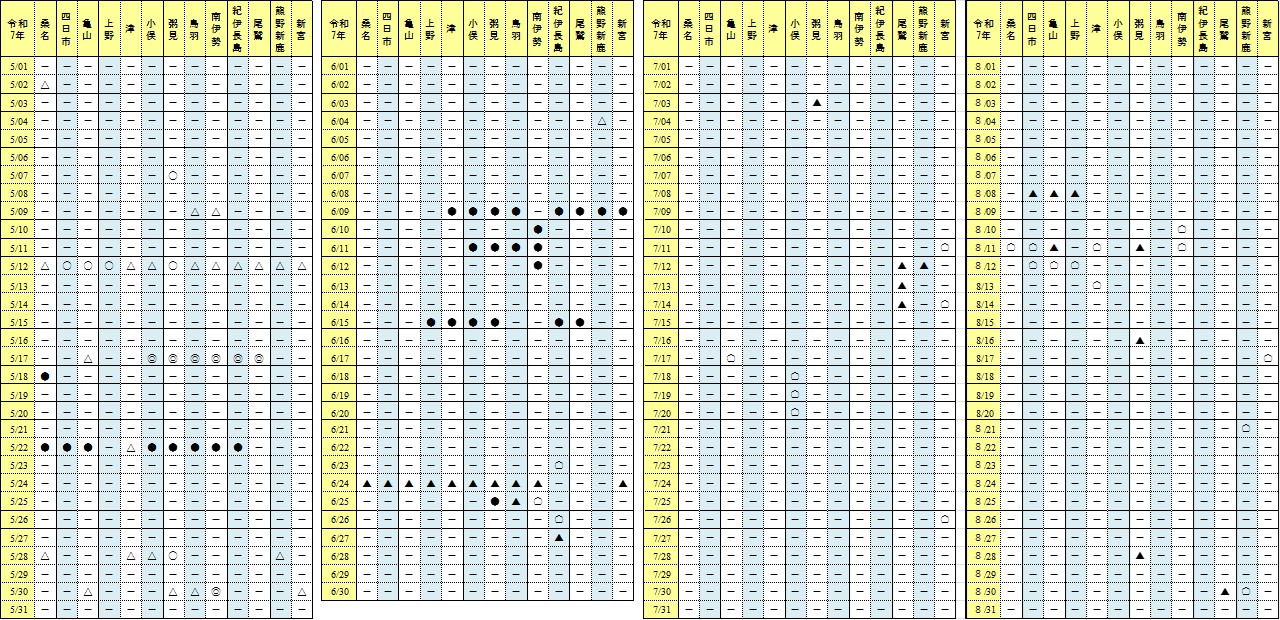 - いもち病菌の感染に好適な気象条件(感染好適条件:凡例 ●)となった日から、7~10日後に葉いもちの病斑が現れます。