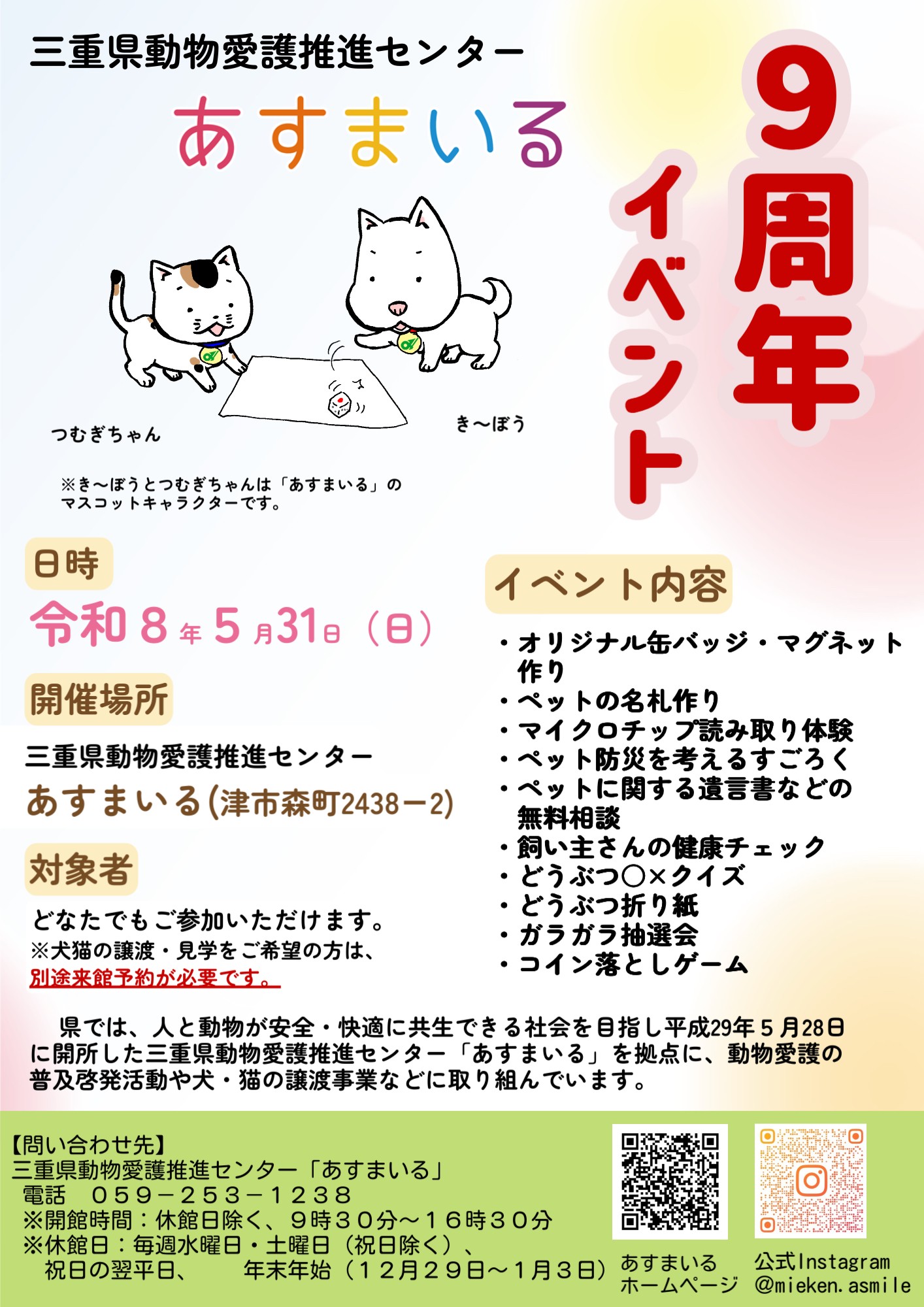 三重県動物愛護推進センター「あすまいる」電話 059-253-1238
