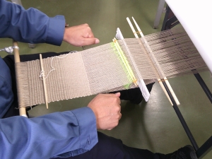 機織りの様子 実験で使う織機