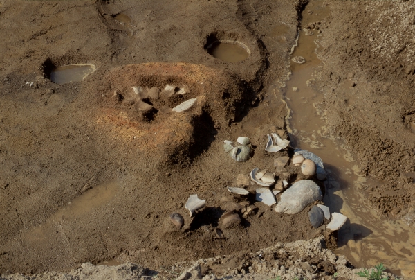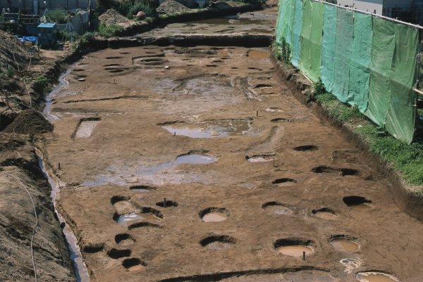 また、平成16年度に行われた第5次調査では、飛鳥時代から奈良時代にかけての建物跡が複数検出されました。その中には、倉庫とみられる小型の掘立柱建物や、大量の貝殻や鉄製刀子(ナイフ)が出土した竪穴建物もあります。