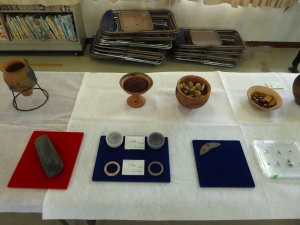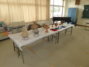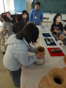 最後に、授業で紹介した土器や石器を観察する時間をとって授業を終えました。